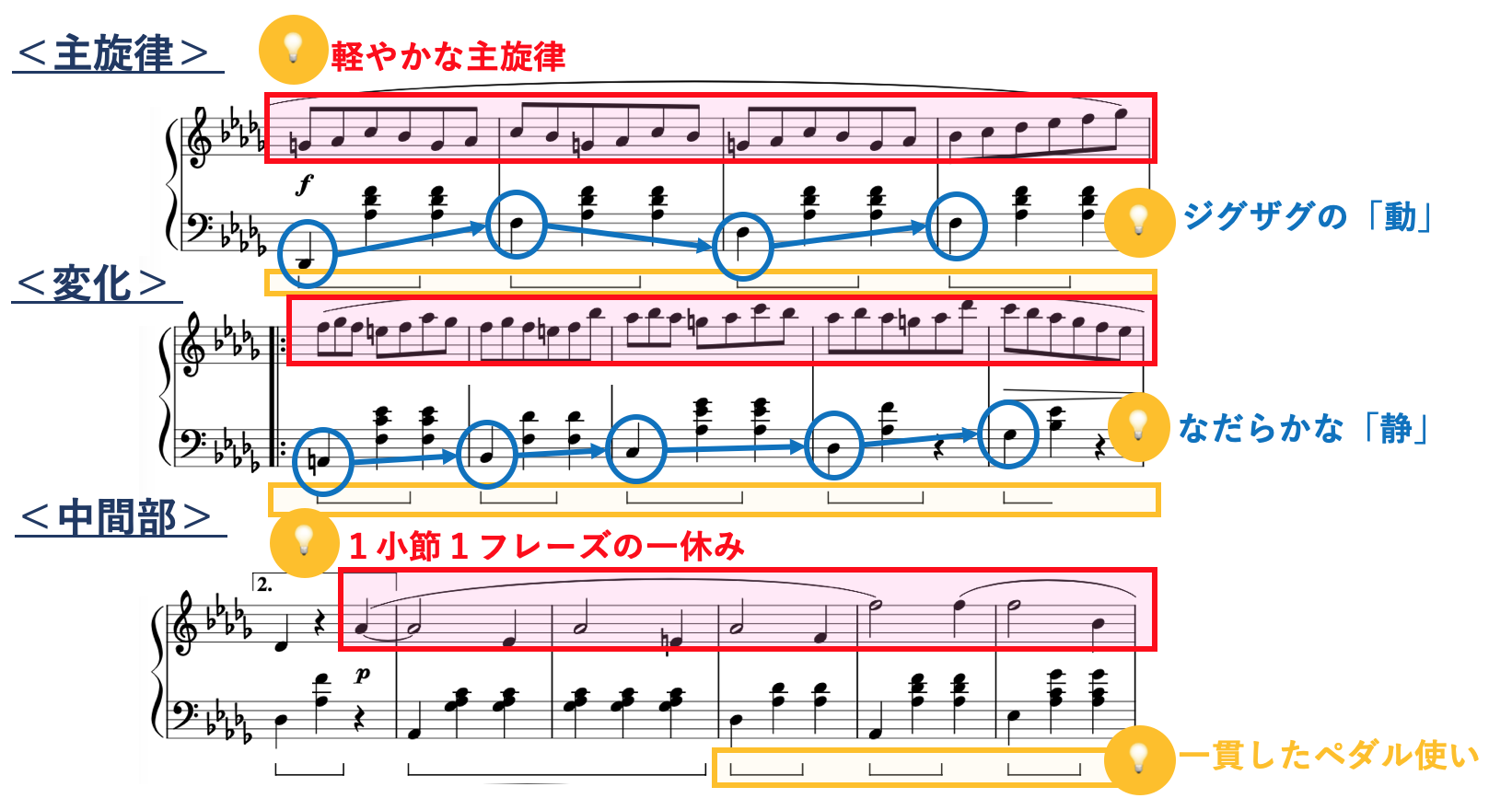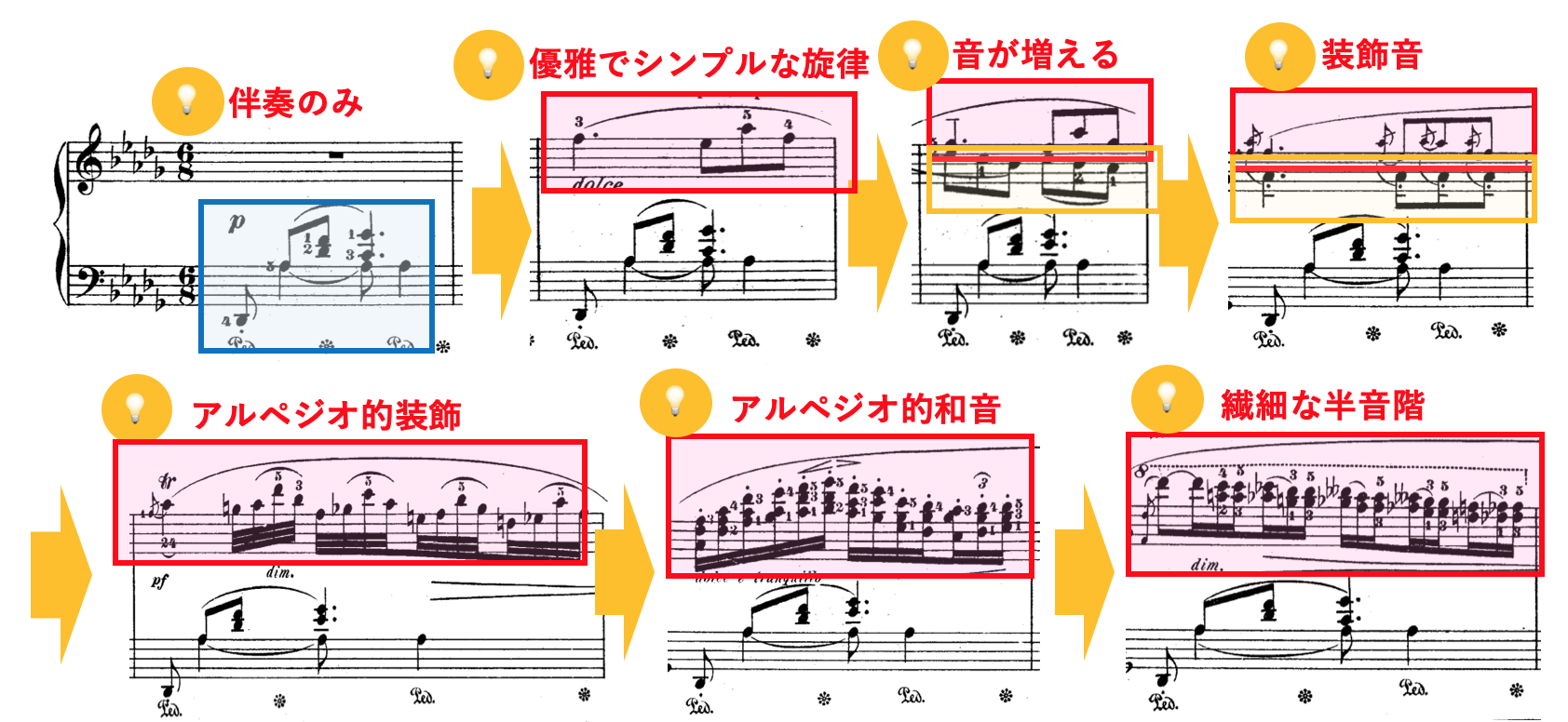 指づかいやペダル使いなど、そのワルツ感を際立たせる要素が至る所に散りばめられています。