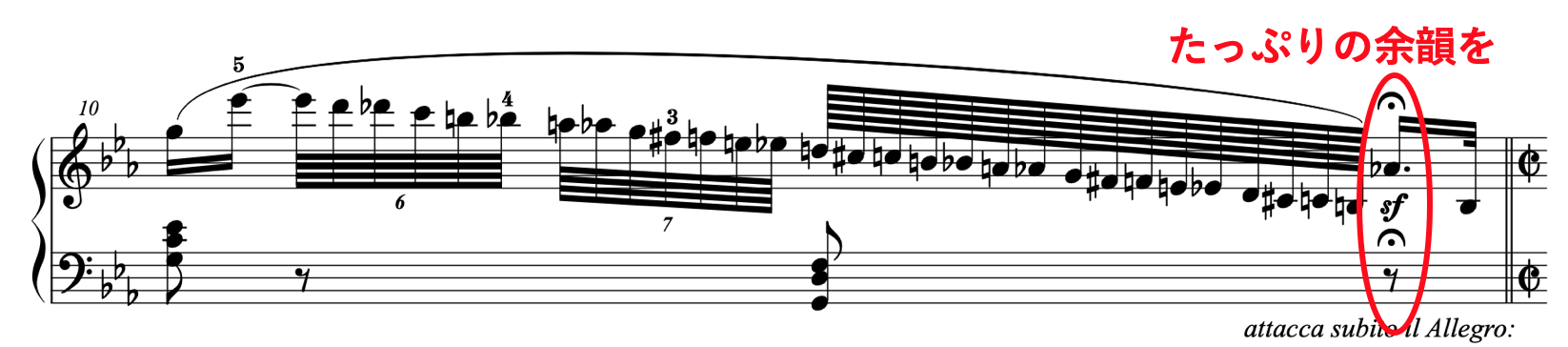 ・余韻:テヌート(丁寧に)、フェルマータ(たっぷりと)