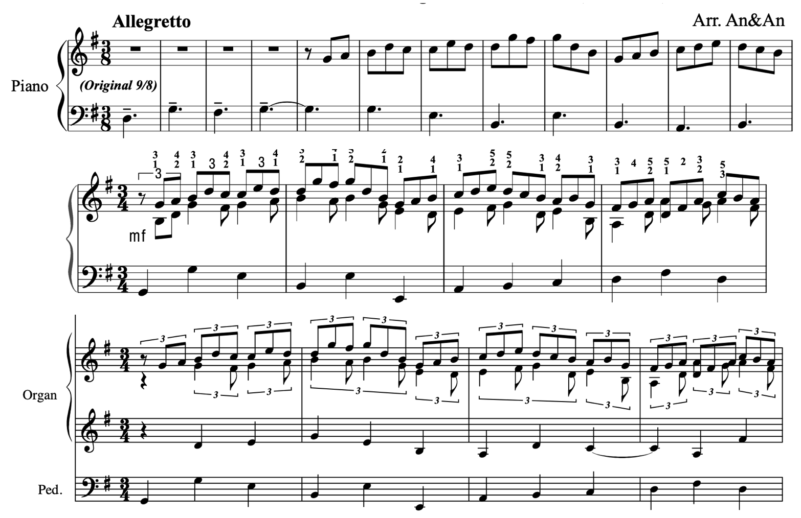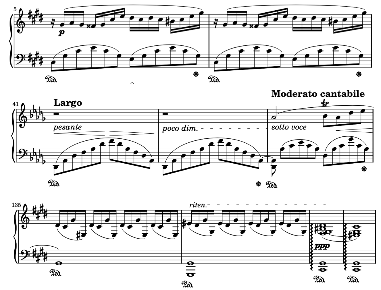 高音部はバイオリンやヴィオラ、和音や低音部はチェロやコントラバスなど、ボリュームたっぷりの管弦楽が連想されます。